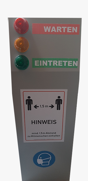 Durch intelligente Sensoren wird der Besucherstrom in Ihrem Shop gemessen. Ich als Ampel entscheide entsprechend Ihrer Vorgaben, wieviel Personen sich gleichzeitig im Laden befinden dürfen und regele entsprechend dieser Logik die Einlässe.